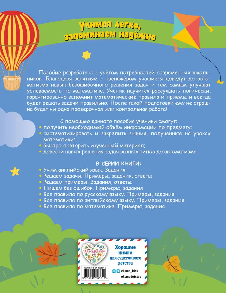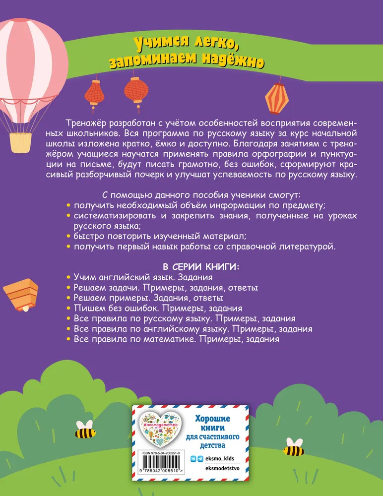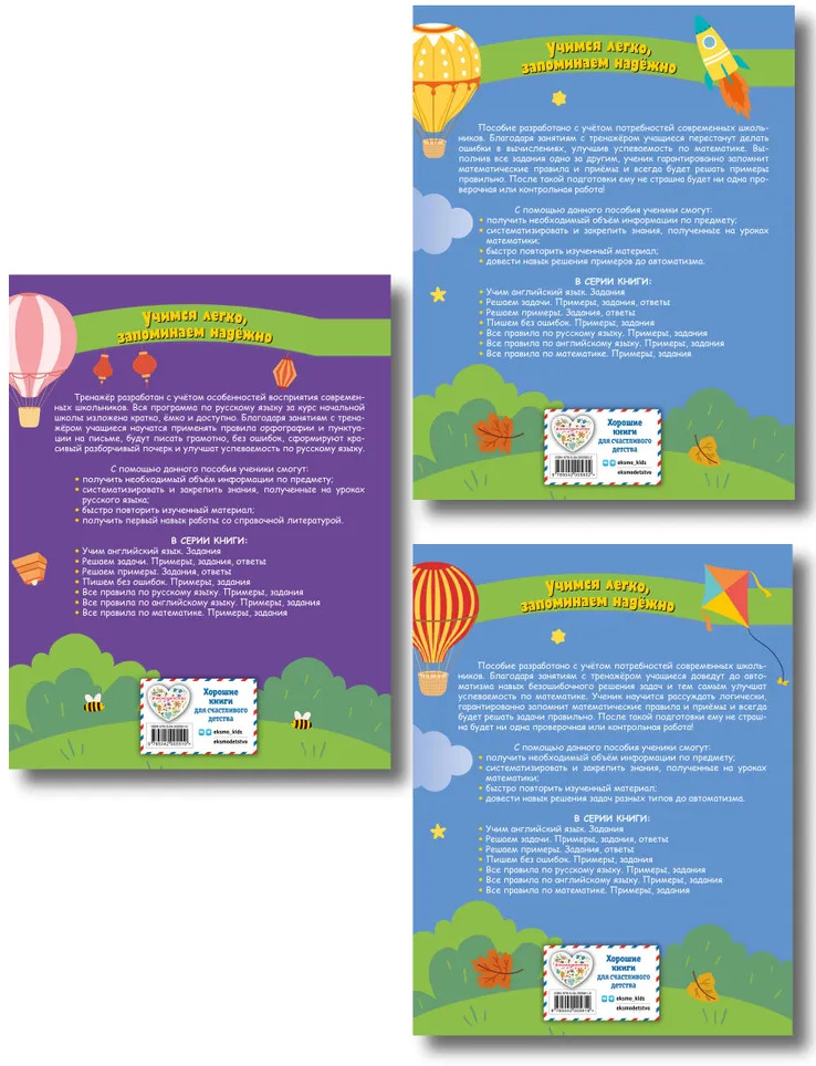 💳 Оплатить за товар можно при получении 🇰🇿 Есть бесплатная доставка по Казахстану от 1 дня 🎁 Копите бонусы с каждой покупки Серия: Тетрадь-тренажер для начальной школы (обложка) Комплект учебных тетрадей-тренажёров создан для успешного освоения всех ключевых предметов начальной школы. Две тетради по математике помогут ученикам не только научиться правильно решать примеры и задачи, но и избежать ошибок в контрольных и домашних работах, что гарантирует высокие оценки. Тетрадь по русскому языку научит применять правила орфографии и пунктуации, а также формировать красивый и разборчивый почерк. Все материалы разработаны в соответствии с последними требованиями ФГОС и способствуют систематизации знаний, полученных на уроках. Комплект идеально подходит для закрепления материала, повышения успеваемости и подготовки к итоговым проверкам, облегчая учебный процесс и делая его максимально эффективным. |