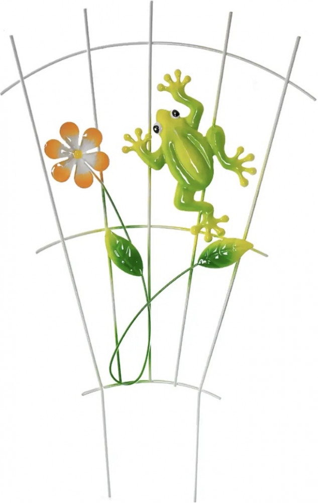 Опора для растений, Greenart, может использоваться как для садовых, так и для комнатных растений. Изготовлена в виде решётки из тонких прутьев белого цвета. Украшена красочными объёмными фигурками цветов, птиц, стрекоз, божьих коровок. Размер: 38×24 см.