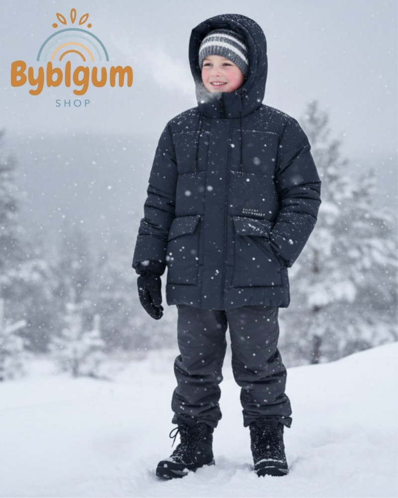Зимняя детская куртка с утеплителем. Прямой крой, капюшон, высокий ворот, ветрозащитная ткань. Подходит для холодной зимы, прогулок и активного отдыха.