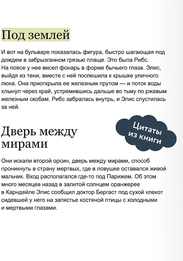 💳 Оплатить за товар можно при получении 🇰🇿 Есть бесплатная доставка по Казахстану от 1 дня 🎁 Копите бонусы с каждой покупки Серия: Red Violet. Темные миры Пожар уничтожил поместье Карндейл, и его обитатели рассеялись по миру. Пока юные таланты обживают новое убежище, Элис и Рибс ищут путь к Марлоу, затерявшемуся в чужом мире, а Чарли случайно становится хранителем испорченной пыли и вместе с тем — главной целью всех, кто жаждет власти и могущества. Но, куда бы они ни стремились, дорога ведет в самое сердце тьмы, в обитель бед и отчаяния. Джейкоб Марбер умер, но настоящее зло только пробуждается. |
