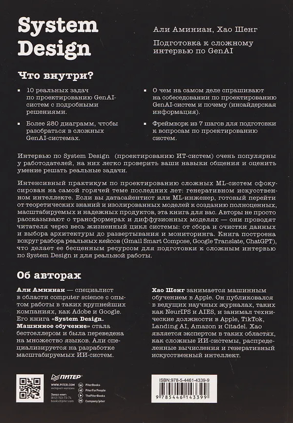 💳 Оплатить за товар можно при получении 🇰🇿 Есть бесплатная доставка по Казахстану от 1 дня 🎁 Копите бонусы с каждой покупки Серия: Библиотека программиста Интервью по System Design (проектированию ИТ-систем) очень популярны у работодателей, на них легко проверить ваши навыки общения и оценить умение решать реальные задачи. Интенсивный практикум по проектированию сложных ML-систем сфокусирован на самой горячей теме последних лет: генеративном искусственном интеллекте. Если вы датасайентист или ML-инженер, готовый перейти от теоретических знаний и изолированных моделей к созданию полноценных, масштабируемых и надежных продуктов, эта книга для вас. Авторы не просто рассказывают о трансформерах и диффузионных моделях — они проводят читателя через весь жизненный цикл системы: от сбора и очистки данных и выбора архитектуры до развертывания и мониторинга. Книга построена вокруг разбора реальных кейсов (Gmail Smart Compose, Google Translate, ChatGPT), что делает её бесценным ресурсом для подготовки к сложным интервью по System Design и для реальной работы. |