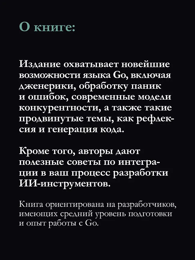 💳 Оплатить за товар можно при получении 🇰🇿 Есть бесплатная доставка по Казахстану от 1 дня 🎁 Копите бонусы с каждой покупки Серия: Библиотека программиста Итак, вы освоили азы Go, что дальше? Чтобы создавать надежные и готовые к использованию Go-приложения, вам нужно научиться реализовывать конкурентность, налаживать сетевые взаимодействия, получать доступ к файлам, использовать такие нативные протоколы передачи данных, как gRPC и TCP/REST, а также разбираться во множестве практических нюансов. В этой книге приводятся готовые решения, которые можно незамедлительно применить в повседневной работе. |
