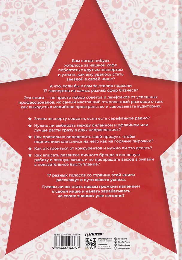 💳 Оплатить за товар можно при получении 🇰🇿 Есть бесплатная доставка по Казахстану от 1 дня 🎁 Копите бонусы с каждой покупки Серия: Редакция Артема Сенаторова Вам когда-нибудь хотелось за чашкой кофе поболтать с крутым экспертом и узнать, как ему удалось стать звездой в своей нише? А что, если бы к вам за столик подсели 17 экспертов из самых разных сфер бизнеса? Эта книга — не просто набор советов и лайфхаков от успешных профессионалов, а самый настоящий откровенный разговор о том, как выходить в медийное пространство и завоевывать свою аудиторию. |