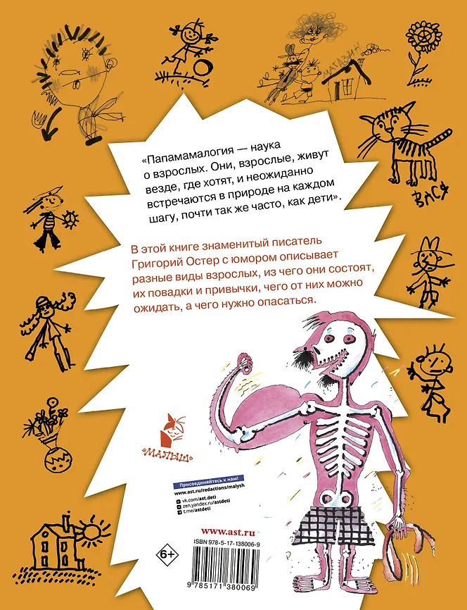 💳 Оплатить за товар можно при получении 🇰🇿 Есть бесплатная доставка по Казахстану от 1 дня 🎁 Копите бонусы с каждой покупки Серия: Как пережить трудное детство «Папамамалогия» — наука о взрослых. И если детей воспитывают взрослые, то как детям быть со взрослыми, как их лучше понимать? Чтобы ответить на эти вопросы, Григорий Остер написал эту весёлую и увлекательную книгу. Из книги можно узнать, как устроены взрослые, какие у них характеры, привычки, как они выглядят, как ведут хозяйство, чего стоит от них ожидать, а чего опасаться, и многое другое! |