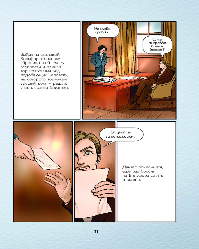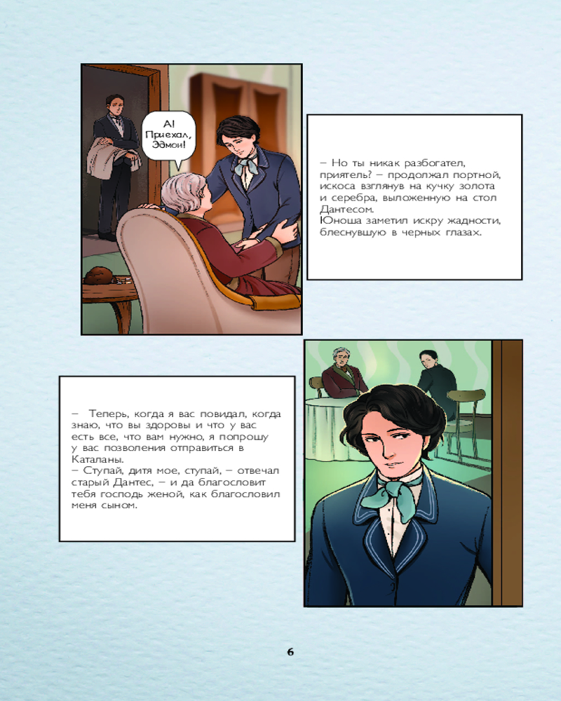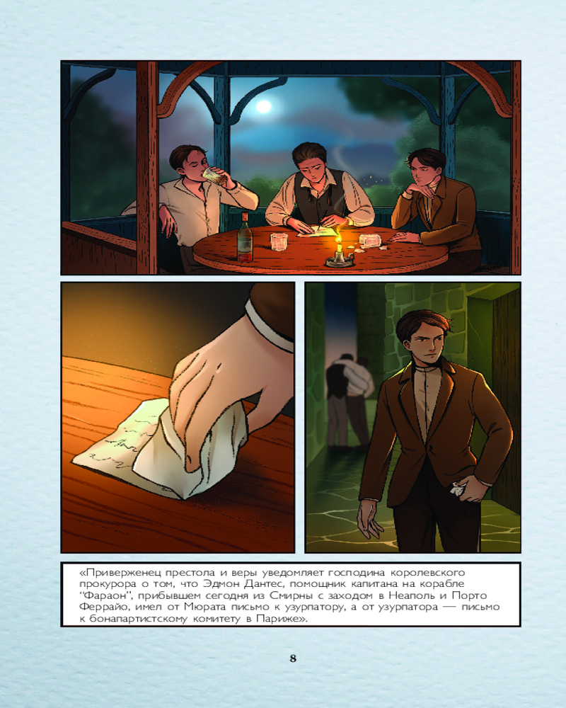 Теперь перед нами совершенно иной человек — таинственный граф Монте-Кристо, вооруженный знаниями, деньгами и жаждой мести. Его цель ясна: вернуть справедливость и наказать тех, кто когда-то сломал его жизнь. Это история о судьбе, искуплении и неизбежности расплаты, рассказанная языком динамичных рисунков от иллюстратора Dafna и эмоциональных диалогов. |
