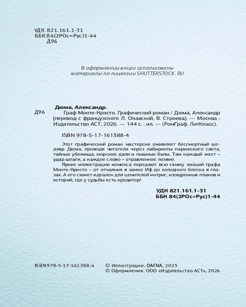 Серия: РомГраф. ЛитКласс Окунитесь в незабываемую историю, полную приключений, интриг, опасностей и, конечно же, любви, вместе с графической адаптацией знаменитого романа Александра Дюма «Граф Монте-Кристо»!