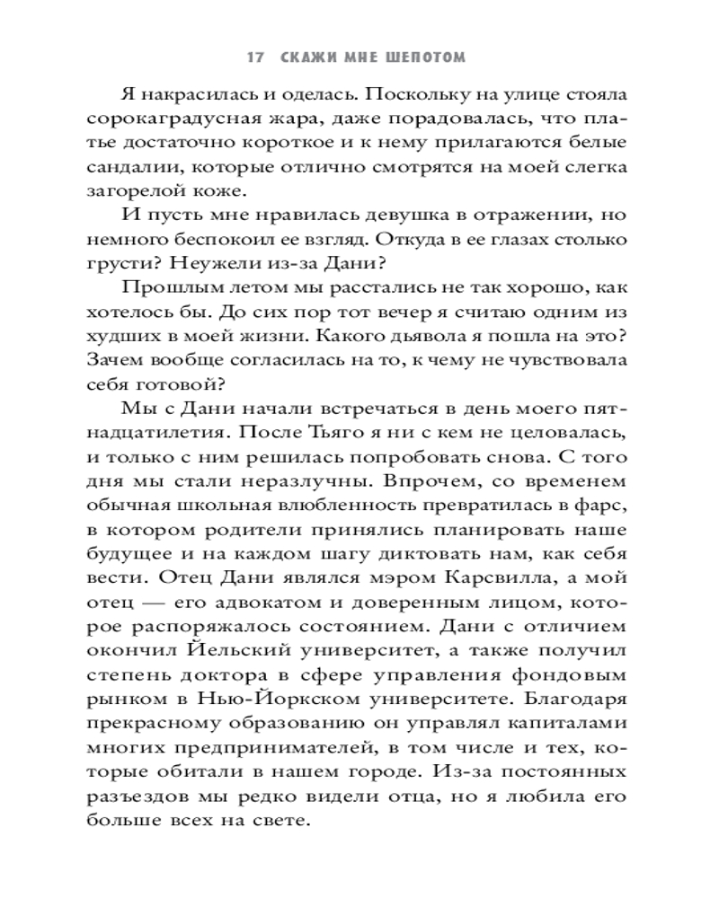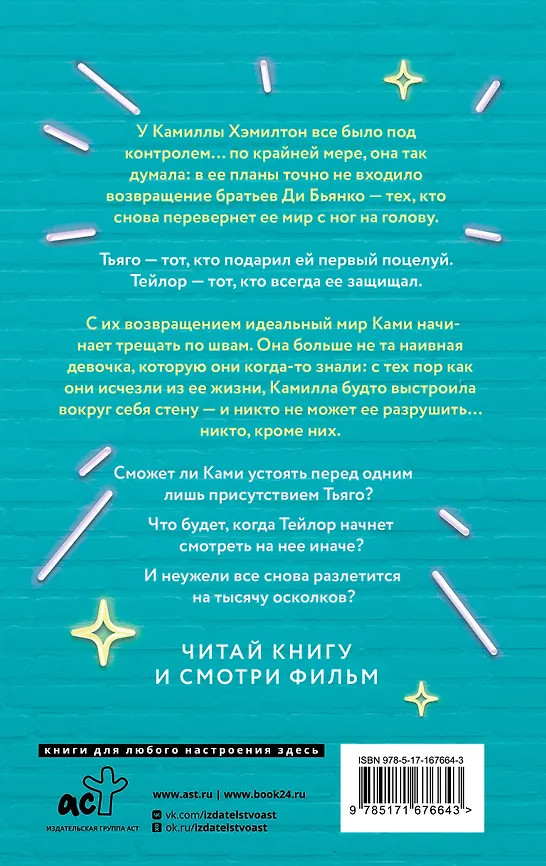 Скажи мне шёпотомВ данный момент этот товар отсутствует в продаже. Возможно, у нас найдется аналогичный или похожий товар здесь. Серия: Клуб романтики У Камиллы Хэмилтон всё было под контролем… По крайней мере, она так думала: в ее планы точно не входило возвращение братьев Ди Бьянко — тех, кто снова перевернет ее мир с ног на голову. Тьяго — тот, кто подарил ей первый поцелуй. Тейлор — тот, кто всегда ее защищал. С их возвращением идеальный мир Ками начинает трещать по швам. Она больше не та наивная девочка, которую они когда-то знали: с тех пор как они исчезли из ее жизни, Камилла будто выстроила вокруг себя стену — и никто не может ее разрушить… Никто, кроме них. Сможет ли Ками устоять перед одним лишь присутствием Тьяго? Что будет, когда Тейлор начнет смотреть на нее иначе? И неужели всё снова разлетится на тысячу осколков? |