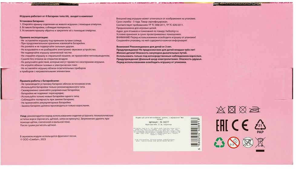 💳 Оплатить за товар можно при получении 🇰🇿 Есть бесплатная доставка по Казахстану от 1 дня 🎁 Копите бонусы с каждой покупки Интерактивная игрушка «Котёнок Милана» ТМ «Мой питомец» станет добрым другом для вашего ребёнка. Этот очаровательный котёнок совсем как настоящий. У Миланы красивые глазки и умилительная мордочка. Разноцветная шёрстка котёнка очень приятная на ощупь. На Милане надет стильный розовый ошейник. Милая игрушка подарит малышу массу положительных эмоций и научит заботиться о домашнем любимице. Игра с интерактивной игрушкой ТМ «Мой питомец» развивает: социально-коммуникативные навыки, фантазию, речь, мышление, память и тактильные навыки. |