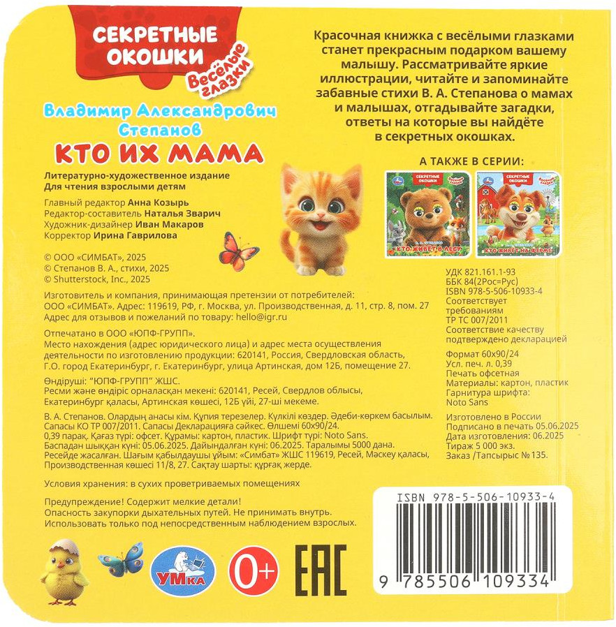 УМка Книжка с глазками и секретными окошками «Кто их мама»-30% +28
