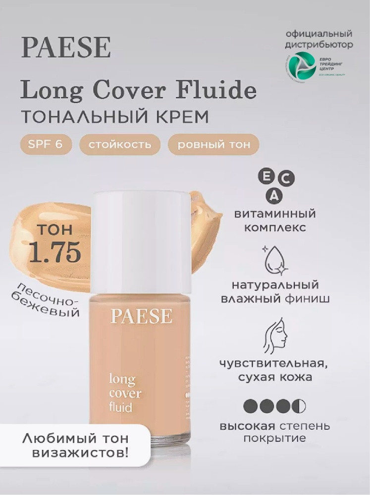 Paese Тональный крем «Long Cover Fluid» SPF 6, оттенок 1.75 Песочно-бежевый