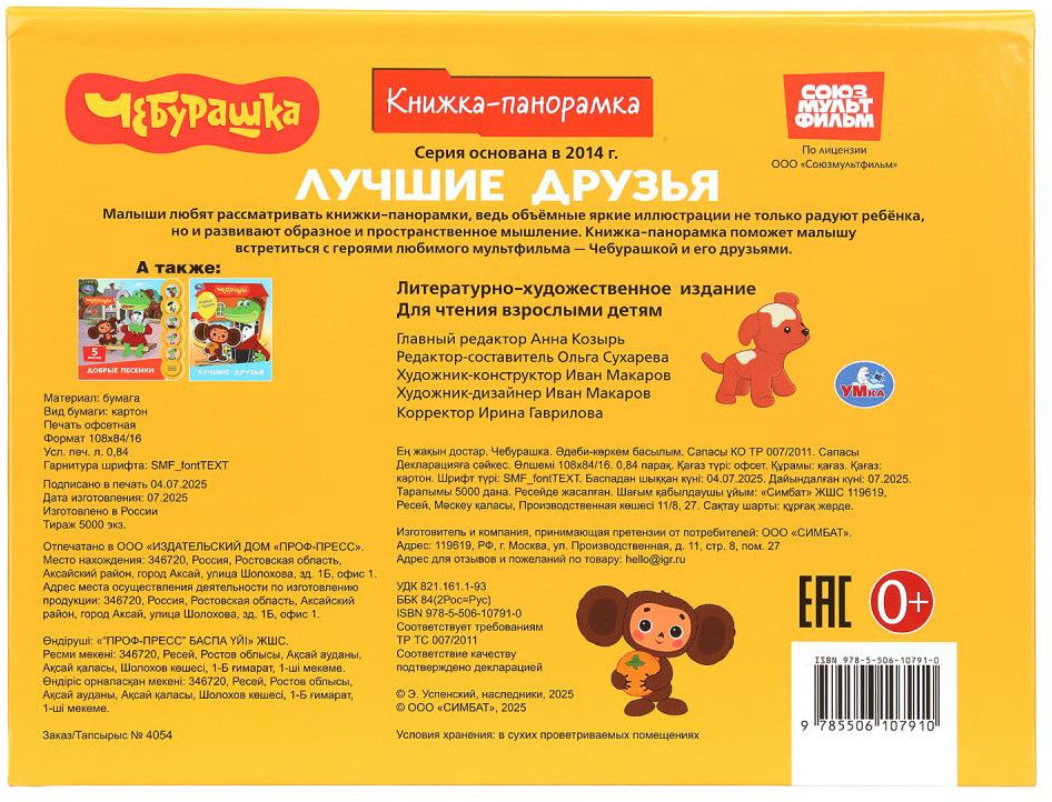 💳 Оплатить за товар можно при получении 🇰🇿 Есть бесплатная доставка по Казахстану от 1 дня 🎁 Копите бонусы с каждой покупки Серия: Чебурашка Книжка-панорамка «Чебурашка. Золотая коллекция. Лучшие друзья» ТМ «УМка» — отличный подарок для маленьких любознаек. Малыш с удовольствием будет листать яркие странички и читать вместе с родителями интересную сказку, которая будет «оживать» на глазах благодаря объёмным картинкам. Книжку-панорамку можно использовать не только для чтения, но и для организации игр-представлений, что делает её отличным инструментом для всестороннего развития ребёнка. |