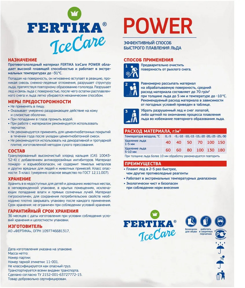 Антиледный реагент «IceCare Power» | Fertika