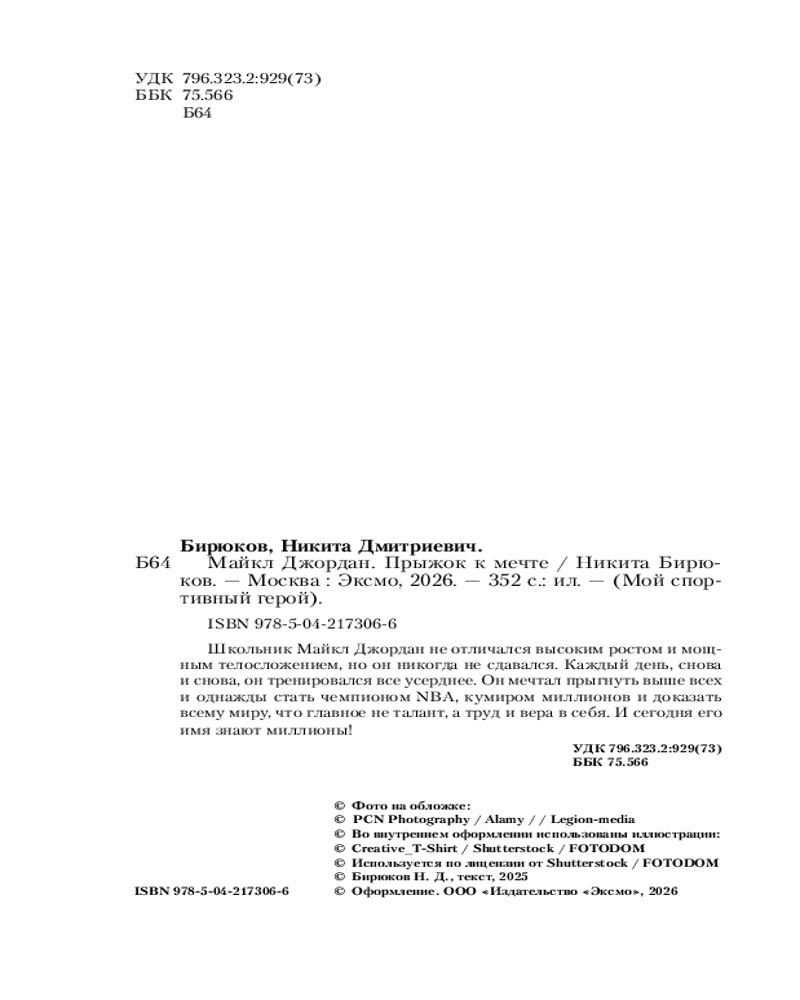 💳 Оплатить за товар можно при получении 🇰🇿 Есть бесплатная доставка по Казахстану от 1 дня 🎁 Копите бонусы с каждой покупки Серия: Мой спортивный герой Школьник Майкл Джордан не отличался высоким ростом и мощным телосложением, но он никогда не сдавался. Каждый день, снова и снова, он тренировался всё усерднее. Он мечтал прыгнуть выше всех и однажды стать чемпионом NВА, кумиром миллионов и доказать всему миру, что главное не талант, а труд и вера в себя. И сегодня его имя знают миллионы! |
