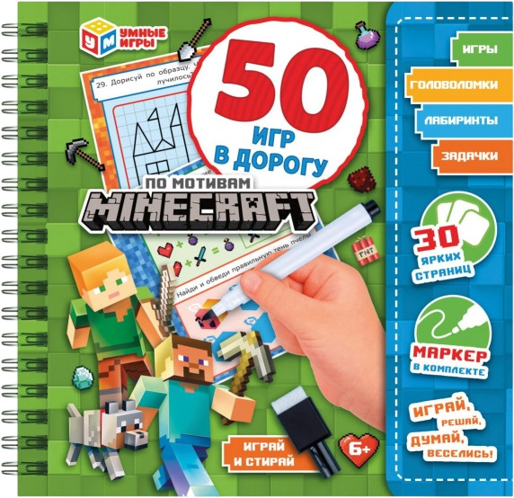 💳 Оплатить за товар можно при получении 🇰🇿 Есть бесплатная доставка по Казахстану от 1 дня 🎁 Копите бонусы с каждой покупки Серия: 50 игр в дорогу Блокнот на спирали с маркером «Мой мир» из серии «50 игр в дорогу» ТМ «Умные игры» непременно понравится маленьким любознайкам. На страницах этого занимательного блокнота с изображениями героев виртуального квадромира ребёнка ждут увлекательные задания и самые разнообразные игры, которые направлены на его многостороннее развитие. С таким блокнотом дети точно не соскучатся в пути и весело скоротают время в дороге, а удобный компактный размер позволит без труда взять его с собой. Блокнот предназначен для многоразового использования — маркер на водной основе легко стирается. |
