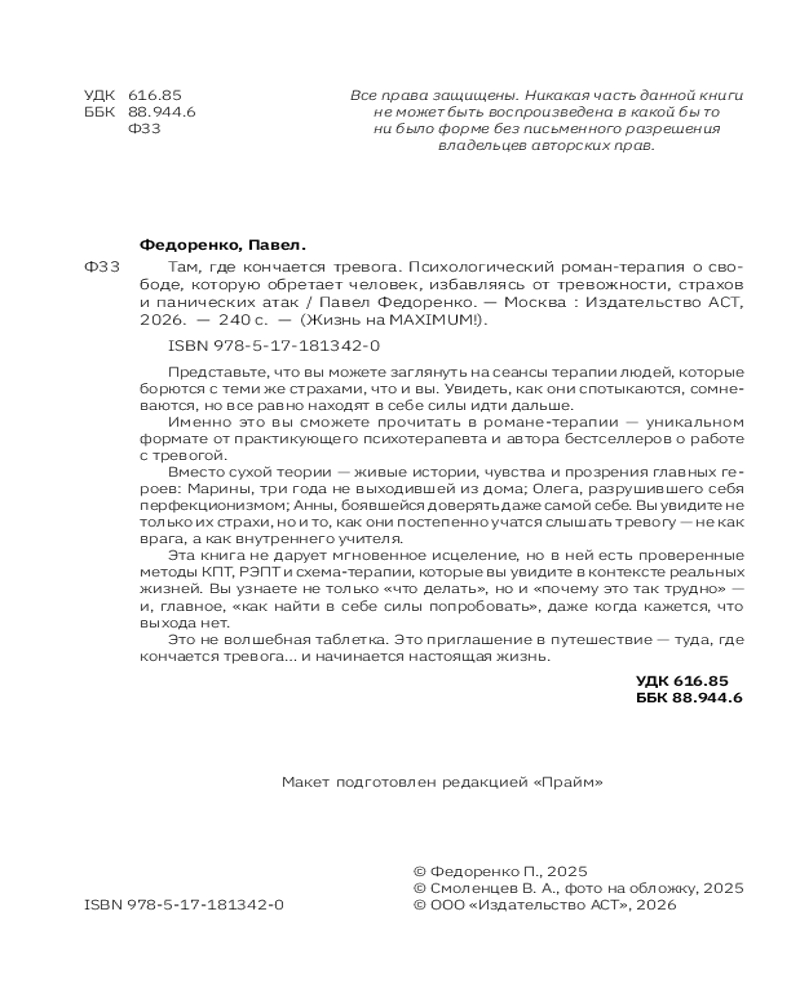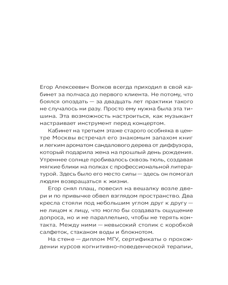 💳 Оплатить за товар можно при получении 🇰🇿 Есть бесплатная доставка по Казахстану от 1 дня 🎁 Копите бонусы с каждой покупки Серия: Жизнь на Maximum! Представьте, что вы можете заглянуть на сеансы терапии людей, которые борются с теми же страхами, что и вы. Увидеть, как они спотыкаются, сомневаются, но все равно находят в себе силы идти дальше. Именно это вы сможете прочитать в романе-терапии — уникальном формате от практикующего психотерапевта и автора бестселлеров о работе с тревогой. Вместо сухой теории — живые истории, чувства и прозрения главных героев: Марины, три года не выходившей из дома; Олега, разрушившего себя перфекционизмом; Анны, боявшейся доверять даже самой себе. Вы увидите не только их страхи, но и то, как они постепенно учатся слышать тревогу — не как врага, а как внутреннего учителя. |