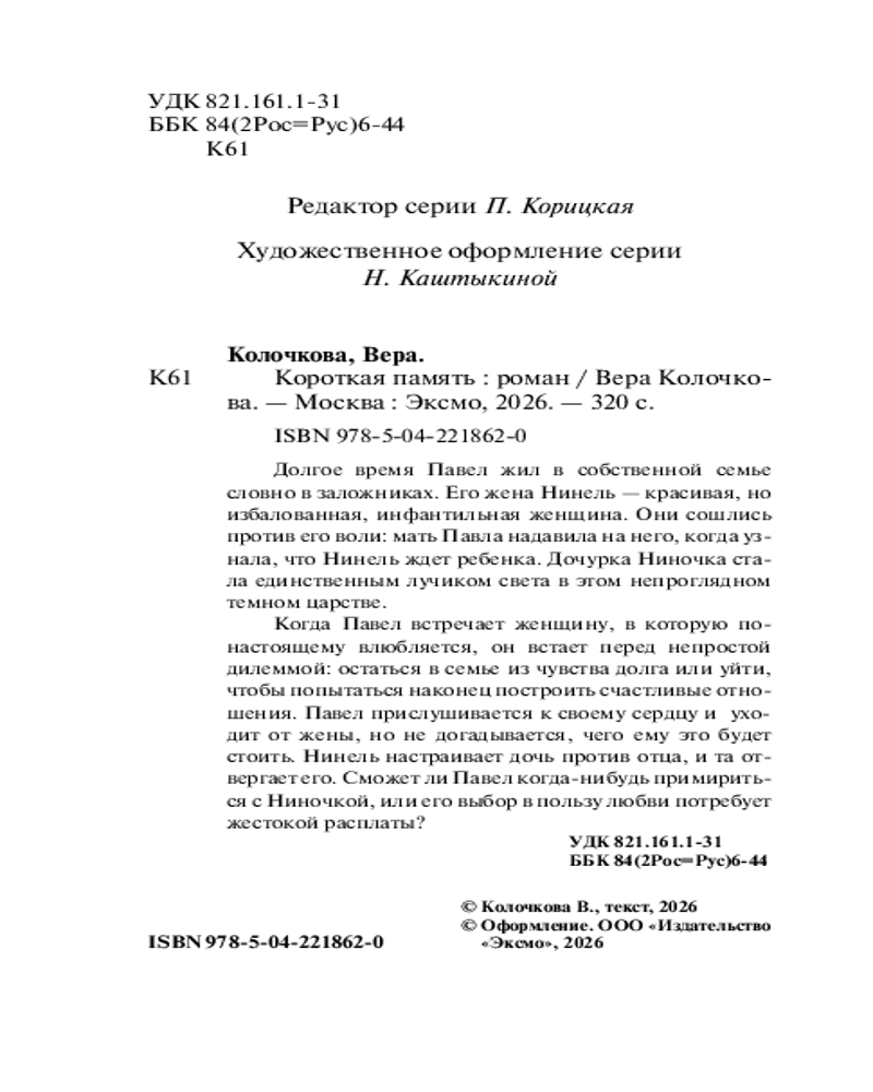 💳 Оплатить за товар можно при получении 🇰🇿 Есть бесплатная доставка по Казахстану от 1 дня 🎁 Копите бонусы с каждой покупки Серия: Секреты женского счастья. Проза Веры Колочковой. Новое оформление (обложка) Долгое время Павел жил в собственной семье словно в заложниках. Его жена Нинель — красивая, но избалованная, инфантильная женщина. Они сошлись против его воли: мать Павла надавила на него, когда узнала, что Нинель ждет ребенка. Дочурка Ниночка стала единственным лучиком света в этом непроглядном тёмном царстве. Когда Павел встречает женщину, в которую по-настоящему влюбляется, он встает перед непростой дилеммой: остаться в семье из чувства долга или уйти, чтобы попытаться наконец построить счастливые отношения. Павел прислушивается к своему сердцу и уходит от жены, но не догадывается, чего ему это будет стоить. Нинель настраивает дочь против отца, и та отвергает его. Сможет ли Павел когда-нибудь примириться с Ниночкой или его выбор в пользу любви потребует жестокой расплаты? |