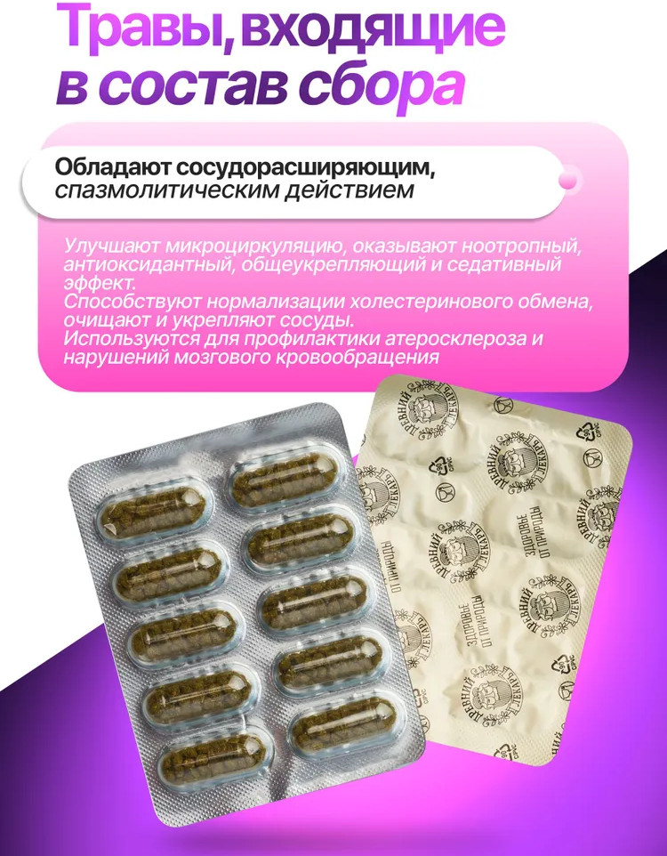 Древний лекарь Травяные капсулы для сосудов «Чистое русло»