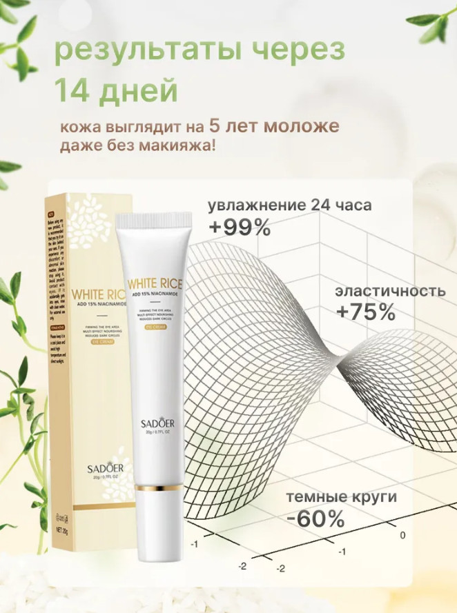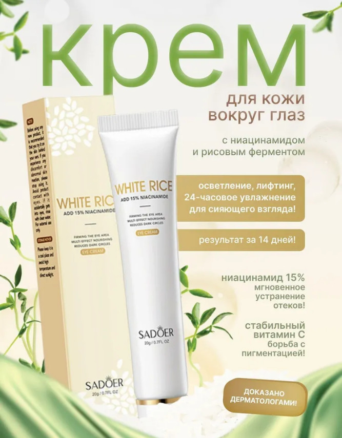 SADOER Крем для кожи вокруг глаз с 15% ниацинамидом и экстрактом риса
