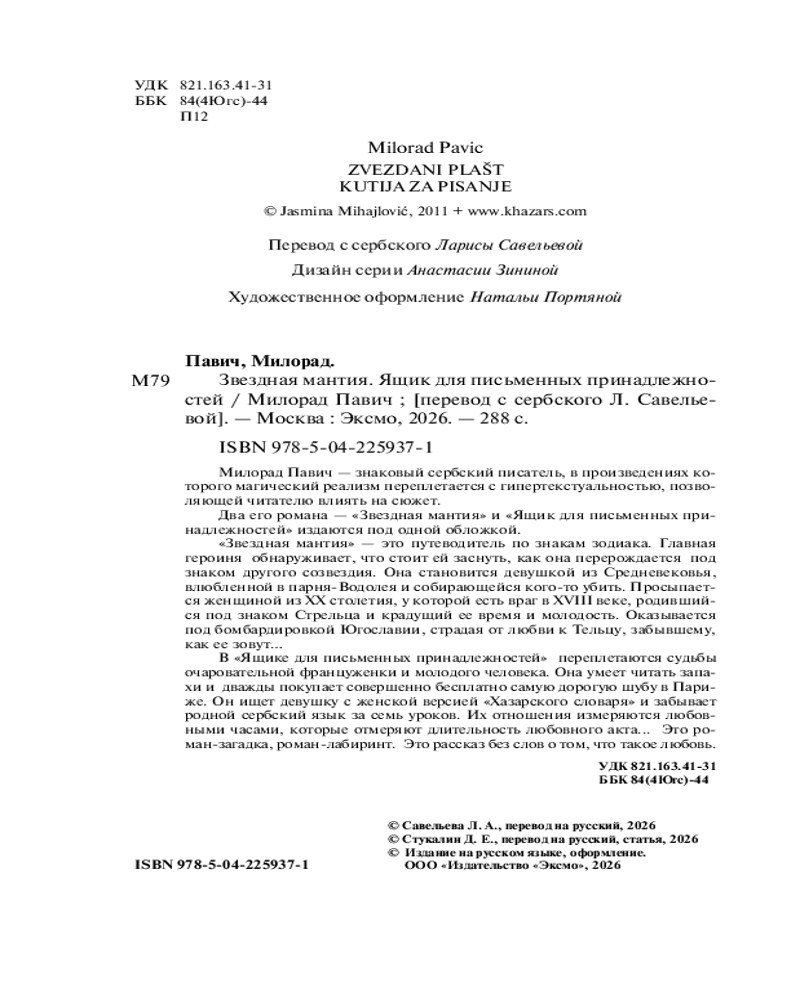 💳 Оплатить за товар можно при получении 🇰🇿 Есть бесплатная доставка по Казахстану от 1 дня 🎁 Копите бонусы с каждой покупки Серия: Магистраль. Коллекция «Звездная мантия» — это путеводитель по знакам Зодиака. Главная героиня обнаруживает, что стоит ей заснуть, как она перерождается под знаком другого созвездия. Она становится девушкой из Средневековья, влюбленной в парня-Водолея и собирающейся кого-то убить. Просыпается женщиной из XX столетия, у которой есть враг в XVIII веке, родившийся под знаком Стрельца и крадущий ее время и молодость. Оказывается под бомбардировкой Югославии, страдая от любви к Тельцу, забывшему, как ее зовут... Переносясь по страницам справочника зодиакальных созвездий, вам предстоит определить судьбу героини: вернуть ей имя и воссоединить влюбленных или, ничего не предприняв, оставить их разбитыми посреди войны. |