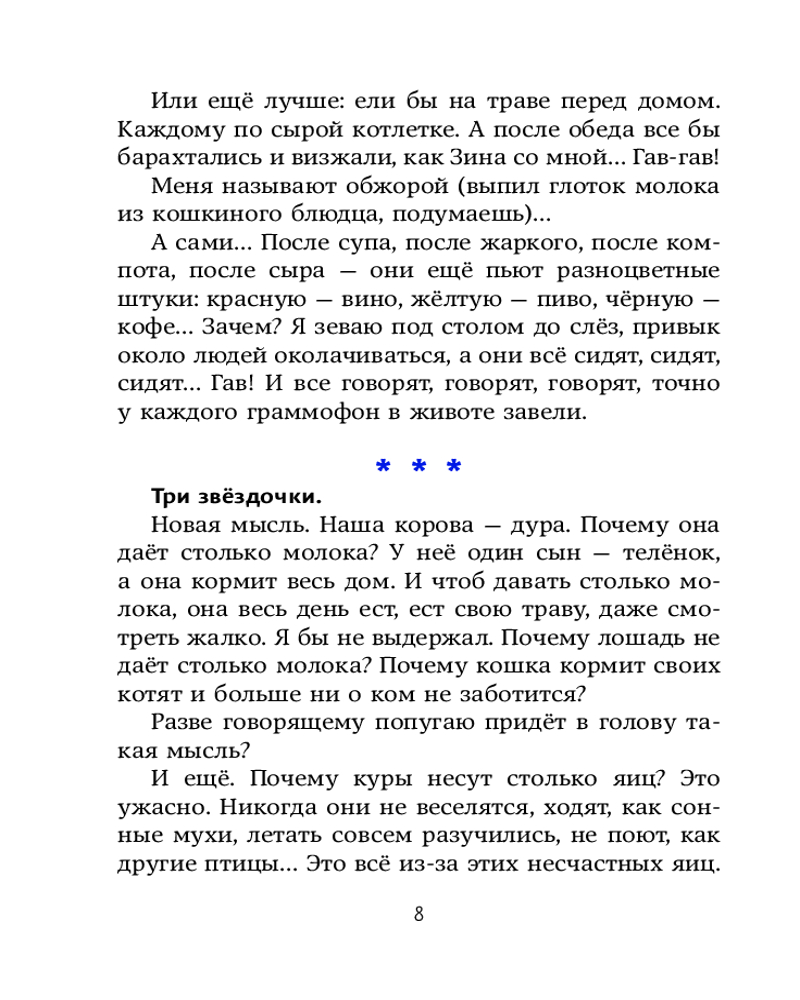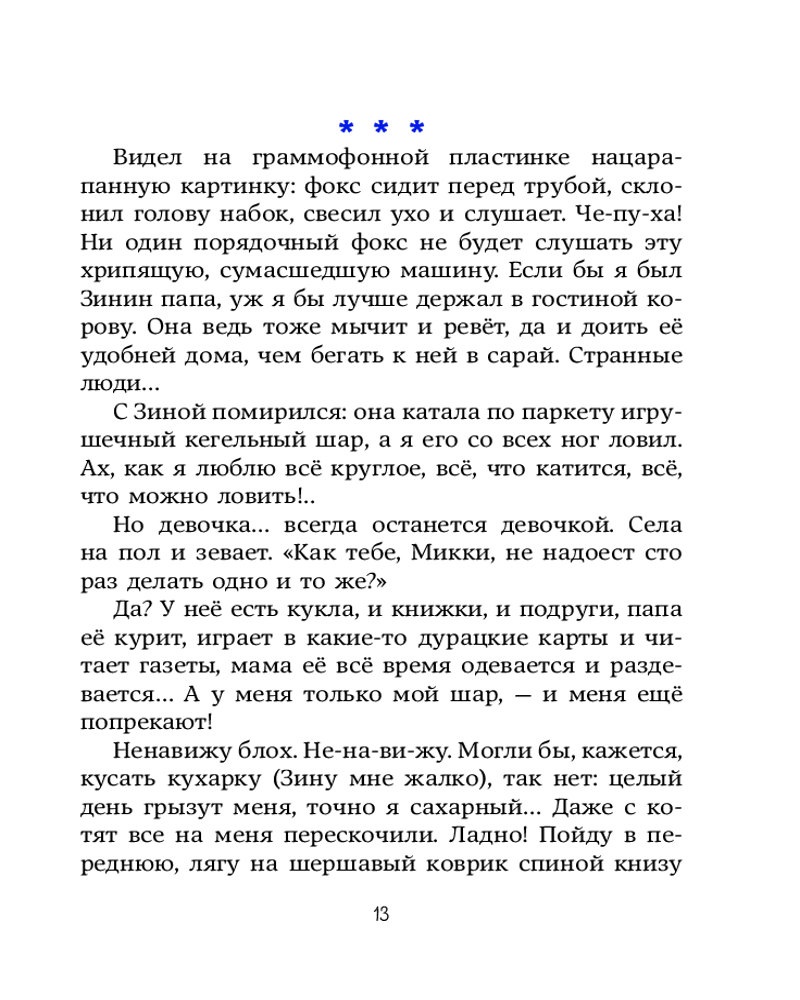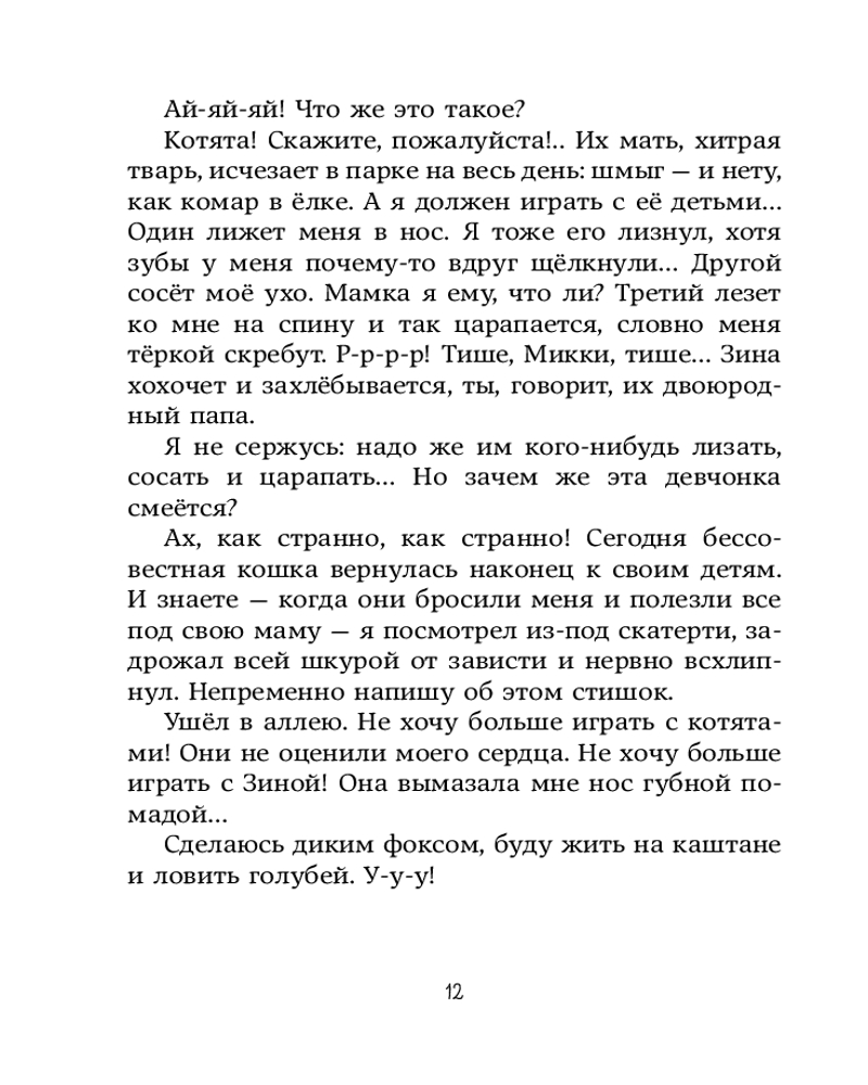 💳 Оплатить за товар можно при получении 🇰🇿 Есть бесплатная доставка по Казахстану от 1 дня 🎁 Копите бонусы с каждой покупки Серия: Золотые сказки для детей Издание в твёрдом переплёте с частичным лаком. Плотная белая бумага. Чёткий, удобный для чтения шрифт. Полноцветные иллюстрации. «Дневник фокса Микки» — это 12 весёлых, добрых, немного наивных рассказов, придуманных русским писателем Сашей Чёрным для детей и взрослых. Друзья вспоминали, что, создавая эту книгу, Саша Чёрный почти в прямом смысле слова «влез в собачью шкуру»: пытался вести дневник, держа во рту огрызок карандаша, ловил зубами кегельный шар, лаял на граммофон и даже чесаться старался по-собачьи. Возможно, поэтому книга получилась такой увлекательной и правдоподобной. Ни у кого из читателей не возникает и тени сомнения в том, что умный, дружелюбный, находчивый и талантливый фоксик Микки действительно вёл дневник, который совершенно случайно попал в руки издателей. Прочитайте же его скорее и убедитесь в этом сами! |