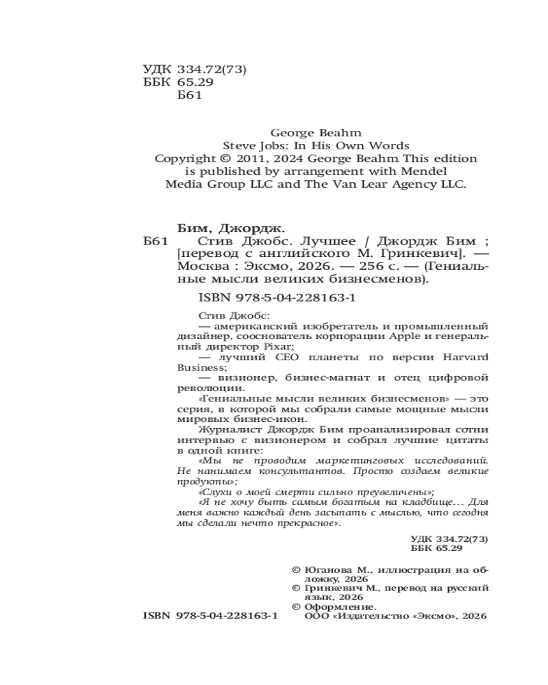 💳 Оплатить за товар можно при получении 🇰🇿 Есть бесплатная доставка по Казахстану от 1 дня 🎁 Копите бонусы с каждой покупки Серия: Гениальные мысли великих бизнесменов Стив Джобс: |