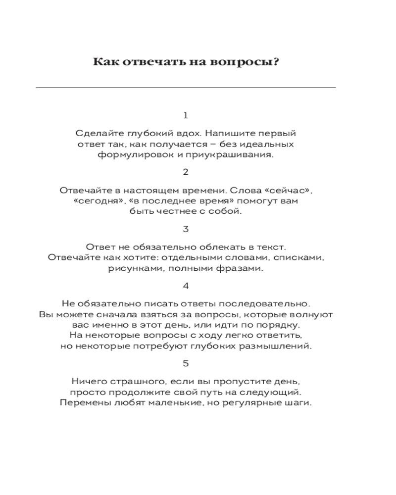 • вместо сухих чек-листов — вопросы, которые раскрывают тебя. Каждая страница помогает увидеть следующий маленький шаг, а не давит глобальными «надо»;
