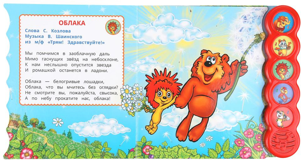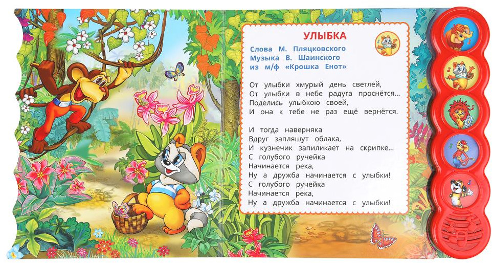 💳 Оплатить за товар можно при получении 🇰🇿 Есть бесплатная доставка по Казахстану от 1 дня 🎁 Копите бонусы с каждой покупки Серия: Союзмультфильм Музыкальная книга «Союзмультфильм. Любимые песенки» ТМ «УМка» станет отличным подарком для вашего малыша. Ребёнок с удовольствием будет листать плотные страницы, рассматривать яркие картинки и, конечно, нажимать на кнопки и слушать весёлые песенки из любимых мультфильмов. Малыш легко освоит включение звука: по нажатию на кнопку песенка включится, при втором нажатии выключится. Благодаря компактному размеру книгу удобно взять с собой в дорогу. |
