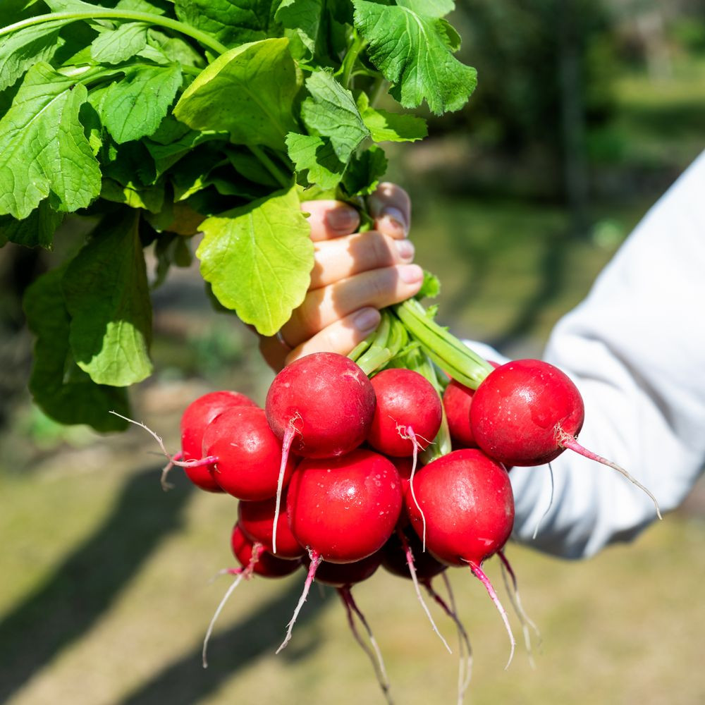 💳 Оплатить за товар можно при получении 🇰🇿 Есть бесплатная доставка по Казахстану от 1 дня 🎁 Копите бонусы с каждой покупки Скороспелый высокоурожайный сорт. Корнеплоды округлые, ярко-красные, крупные, массой до 40 г, без пустот и грубых волокон, с тонкой кожицей. Устойчив к цветушности. Редис можно сеять в несколько сроков. Весной: с конца апреля до середины июля, летом: с конца июля до середины августа, причём осенние посадки дают более крупные корнеплоды. Оптимальная температура для прорастания семян 15-17 °C. Семена высевают в рядки с междурядьями 10-12 см, расстояние между семенами 2-3 см, на глубину 1-1,5 см. В разгар лета, при самом длинном световом дне, посадки необходимо притенять. Полив регулярный, через 2-3 дня, в сухую погоду — ежедневно. |