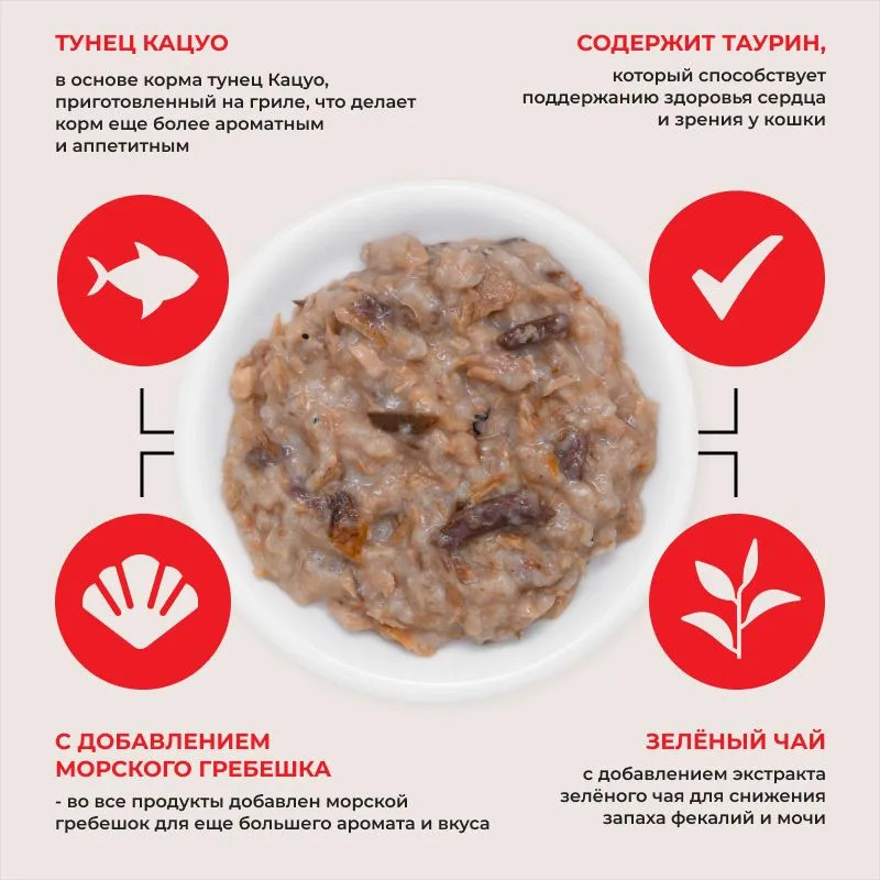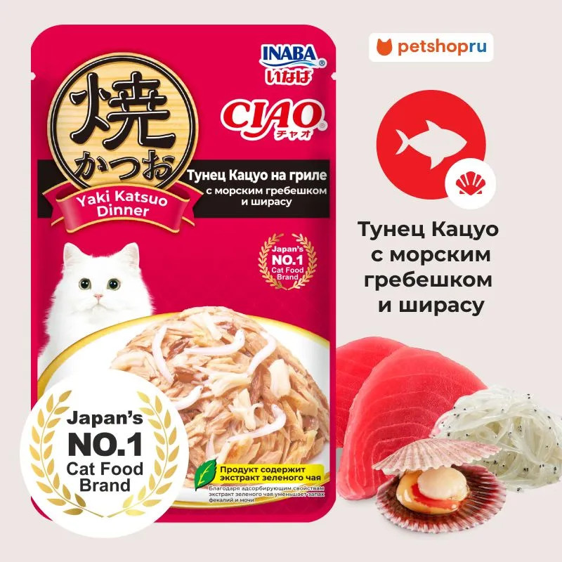 Inaba Корм влажный для кошек «Тунец Кацуо на гриле с морским гребешком и ширасу»