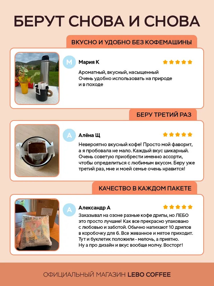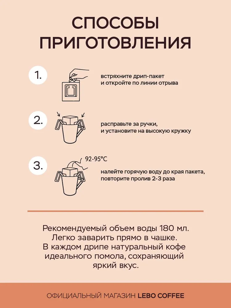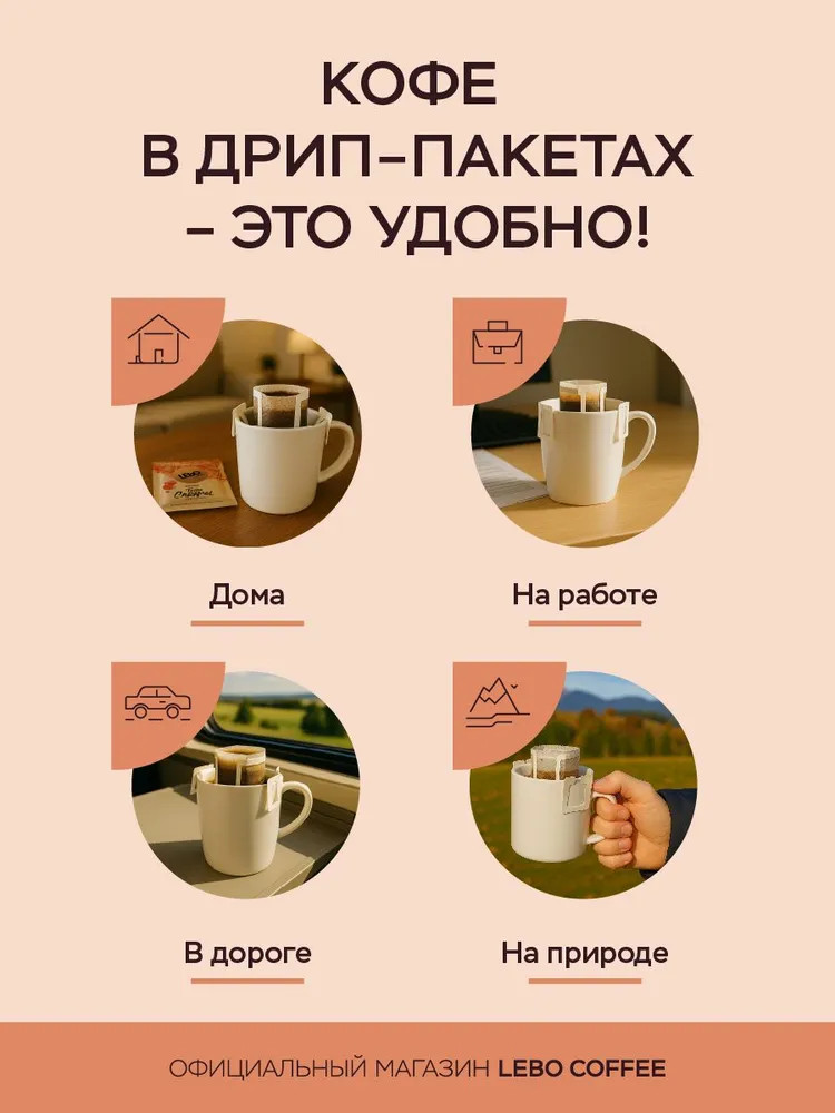 Lebo Кофе натуральный жареный в дрип-пакетах «Choco Brownie»
