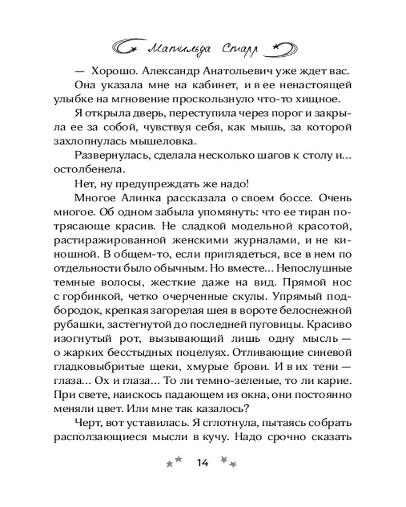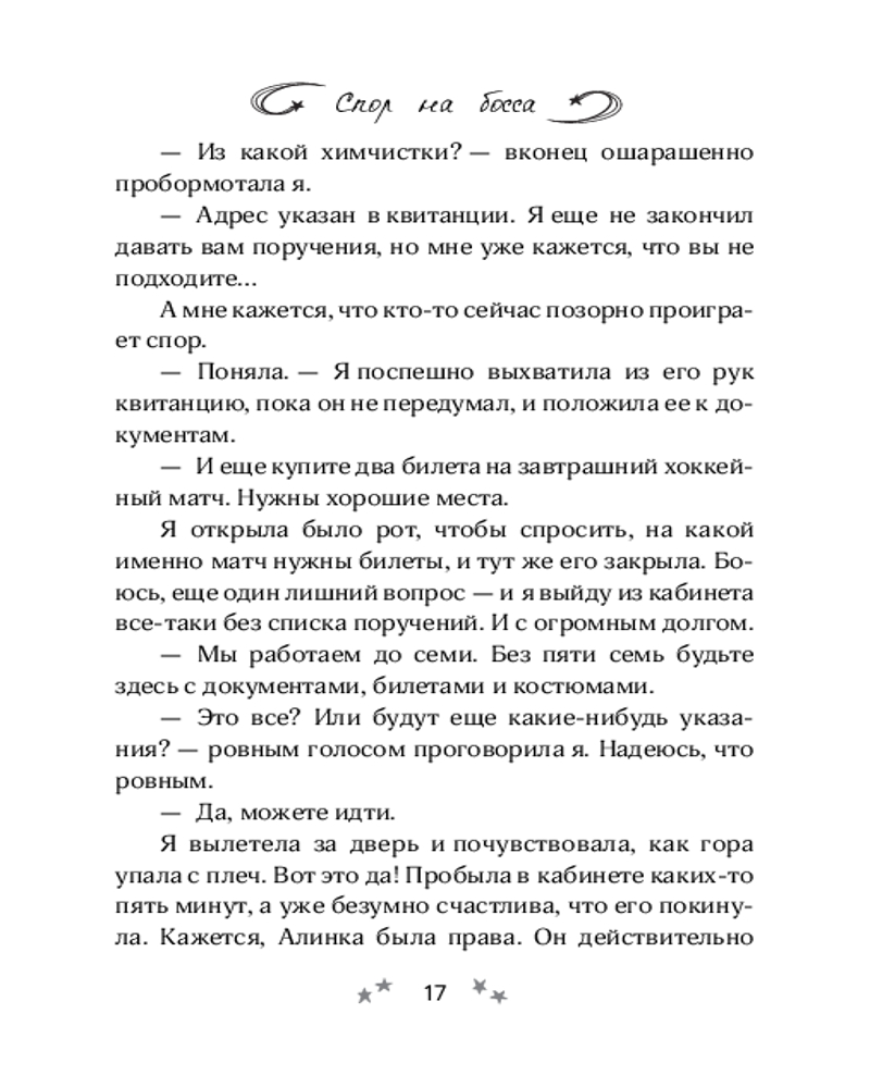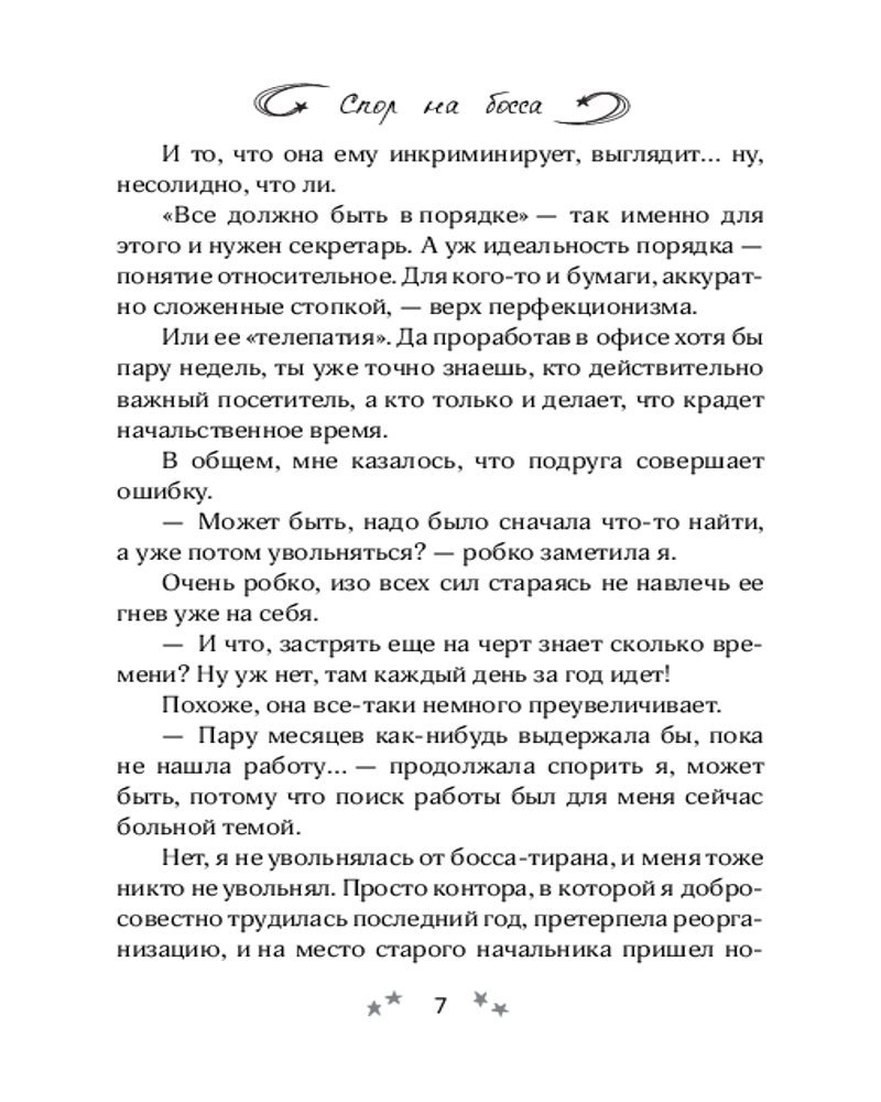 💳 Оплатить за товар можно при получении 🇰🇿 Есть бесплатная доставка по Казахстану от 1 дня 🎁 Копите бонусы с каждой покупки Серия: Секрет моего счастья Подруга Алинка жаловалась на своего босса: дескать, с ним нет никакой жизни! По моему скромному мнению, все эти претензии были надуманными. Пытаясь доказать Алинке, что ее босс вполне нормальный, я сама не заметила, как оказалась втянута в пари. Мне надлежало явиться на собеседование, получить работу и на своем опыте убедиться в невыносимости его характера. Что ж, мне нужно продержаться всего месяц. |