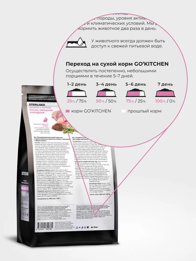 Go'kitchen Корм сухой для стерилизованных кошек с кроликом, бурым рисом, овощами и ягодами