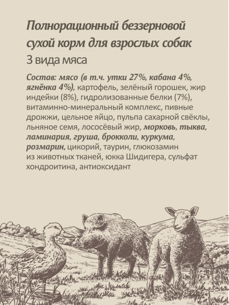 Savita Корм для собак беззерновой с 3 видами мяса «Grain Free Adult 3 Meat Recipe»