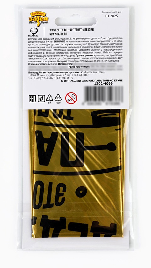 Веселая затея Шар воздушный «Дедушка как папа»-25% +28
