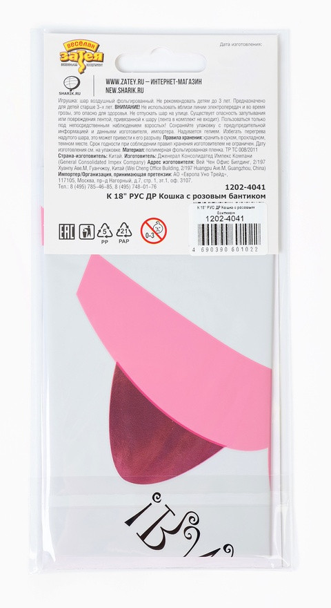 Веселая затея Шар воздушный «Кошка с розовым бантом»-25% +28