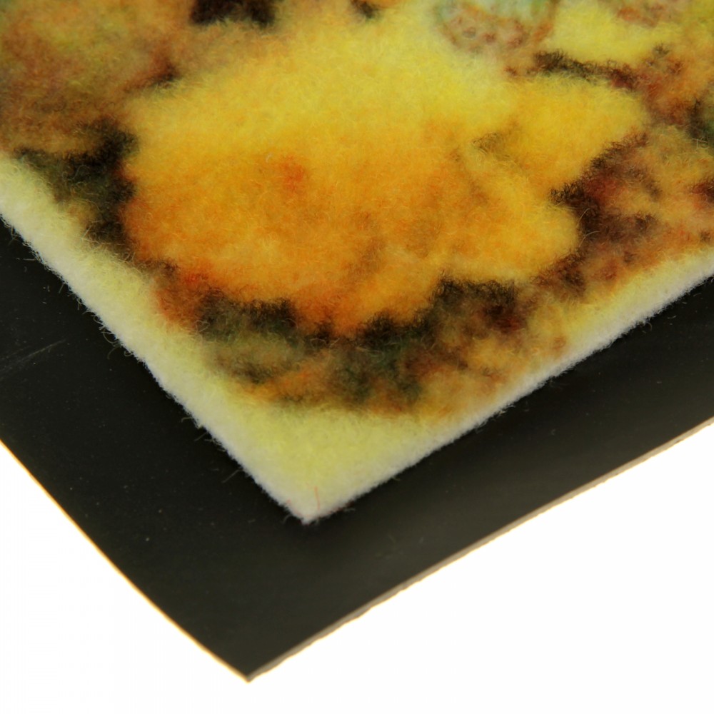Очень стильно и необычно в сравнении с черно-коричневыми избитыми ковриками. Резиновая подложка плотно прилегает к полу.