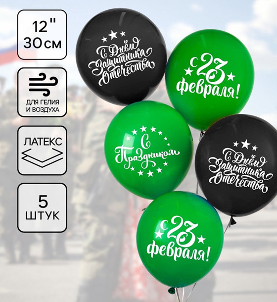 Страна Карнавалия Набор шаров воздушных «С Днём защитника Отечества! С 23 февраля»-40% +19