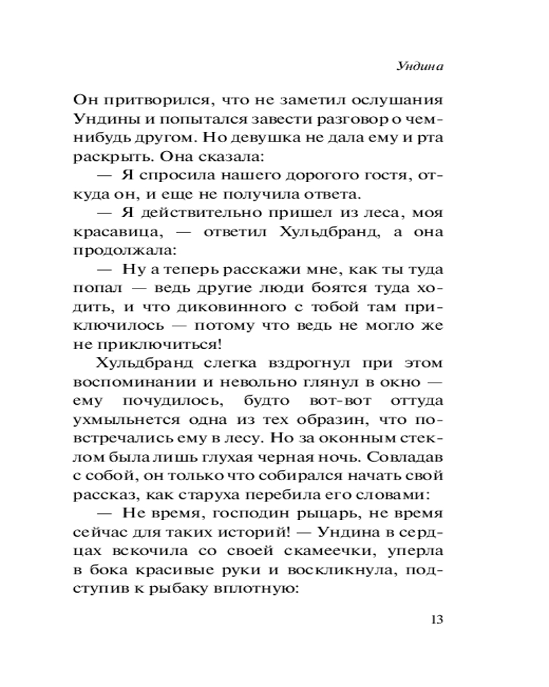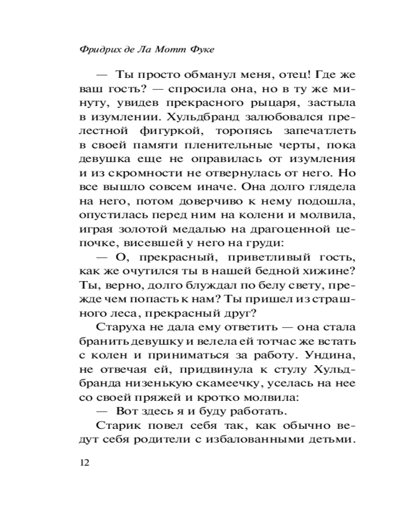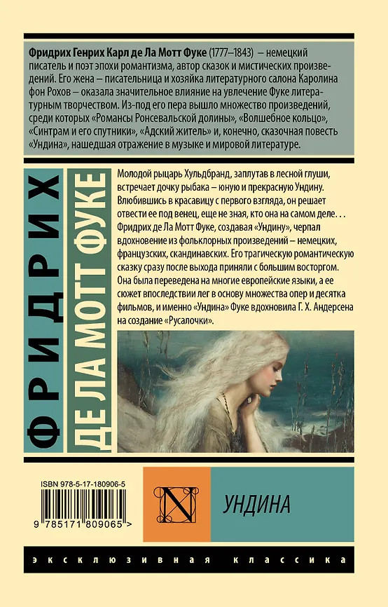💳 Оплатить за товар можно при получении 🇰🇿 Есть бесплатная доставка по Казахстану от 1 дня 🎁 Копите бонусы с каждой покупки Серия: Эксклюзивная классика Молодой рыцарь Хульдбранд, заплутав в лесной глуши, встречает дочку рыбака — юную и прекрасную Ундину. Влюбившись в красавицу с первого взгляда, он решает отвести ее под венец, еще не зная, кто она на самом деле… |