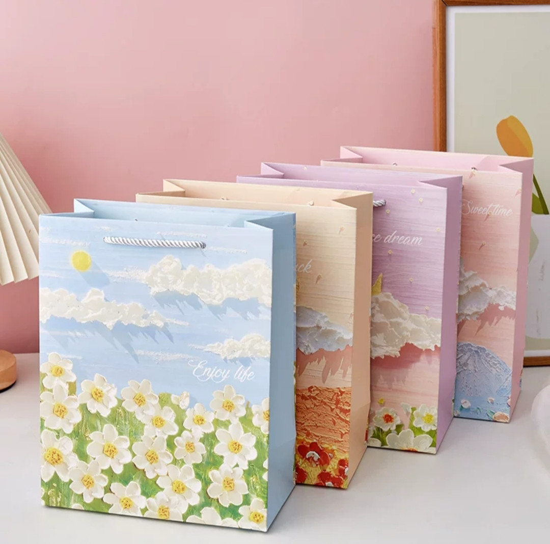 Подарочный картонный пакет с 3D-эффектом «Масляная живопись»