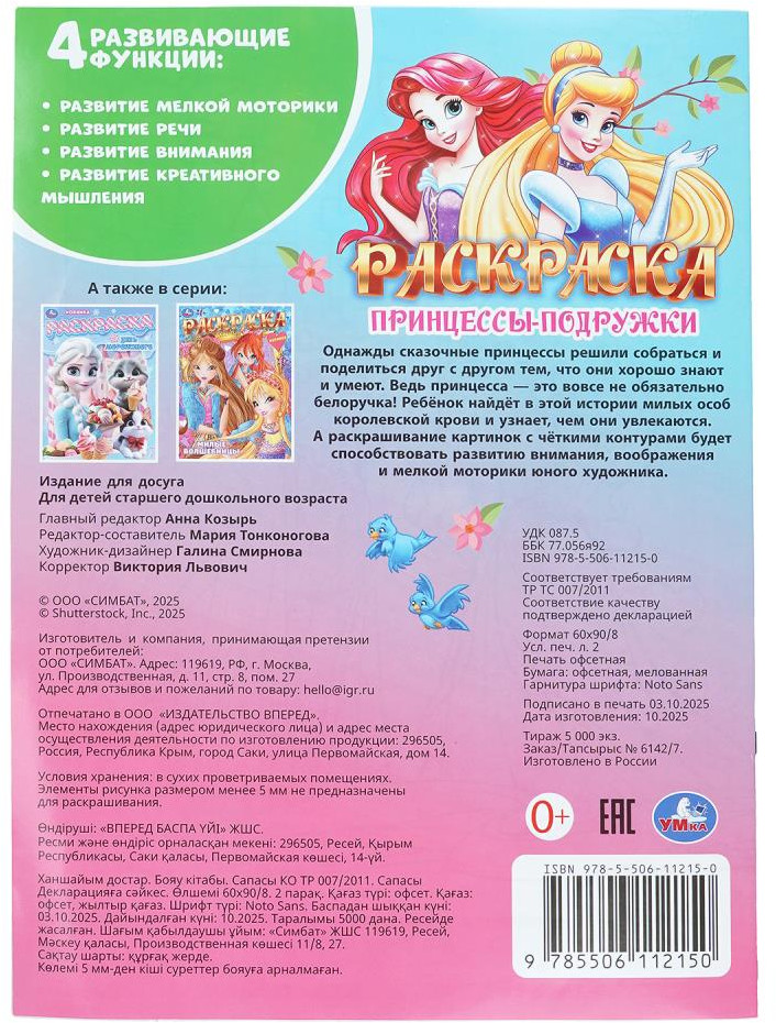 💳 Оплатить за товар можно при получении 🇰🇿 Есть бесплатная доставка по Казахстану от 1 дня 🎁 Копите бонусы с каждой покупки Раскраска «Принцессы-подружки» ТМ «УМка» — отличный подарок для юных художников. Эта увлекательная раскраска про очаровательных принцесс непременно понравится вашему ребёнку. В ней он найдёт интересные картинки с чёткими контурами и сюжетными текстами к ним. Данное издание станет отличным вариантом, чтобы взять его с собой в путешествие и скоротать время в дороге за раскрашиванием. |