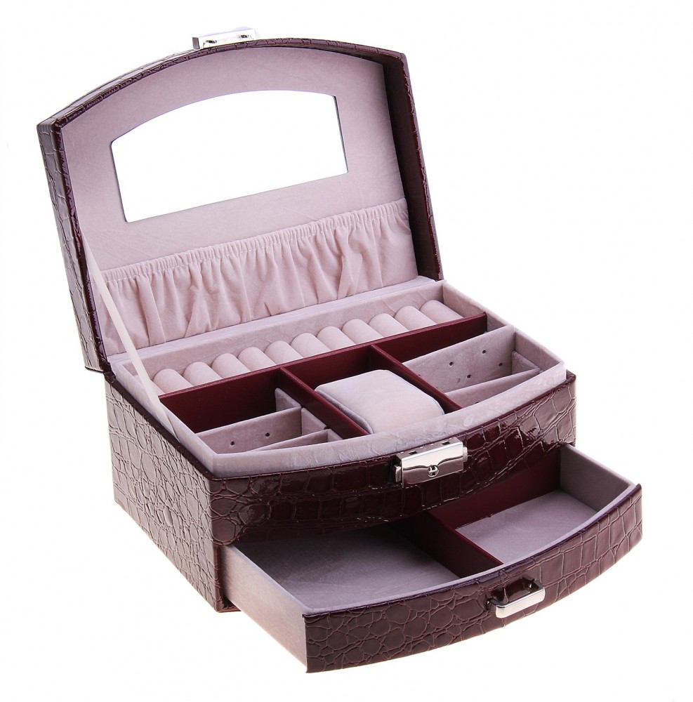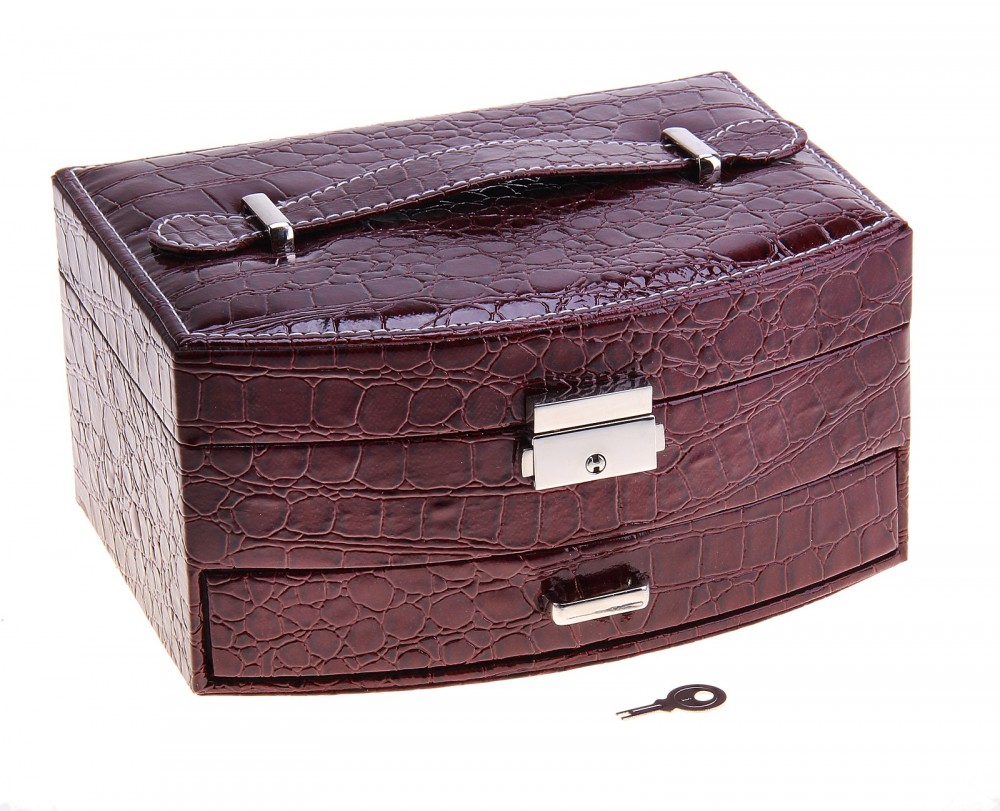 Шкатулка под бижутерию «Бордо»В данный момент этот товар отсутствует в продаже. Возможно, у нас найдется аналогичный или похожий товар здесь. Шкатулка для бижутерии – настоящая находка для женщины, которая привыкла всегда выглядеть безупречно и подчеркивать свое очарование эффектными аксессуарами. Классически элегантная снаружи, эта шкатулка оказывается очень удобной и вместительной внутри. Она снабжена отделениями, предназначенными для разных украшений: колец, браслетов, часов, колье, цепочек, серег. Изнутри шкатулка покрыта мягким материалом, а снаружи – искусственной кожей, эффектной и качественной. Такую шкатулку можно смело вручать представительнице прекрасного пола на Новый год или 8 марта и быть уверенным в том, что этот подарок будет оценен по достоинству. |