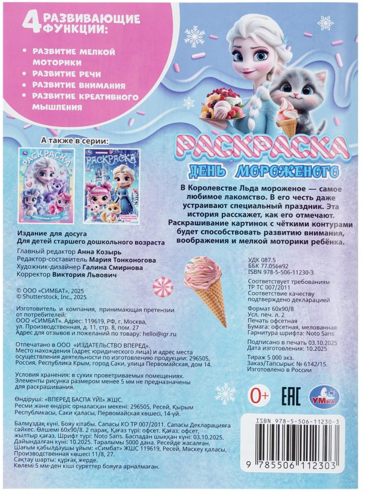 💳 Оплатить за товар можно при получении 🇰🇿 Есть бесплатная доставка по Казахстану от 1 дня 🎁 Копите бонусы с каждой покупки Раскраска «День мороженого» ТМ «УМка» обязательно понравится юным художникам. Эта занимательная раскраска про очаровательную снежную принцессу, милых пушистиков и грандиозный День мороженого не только скрасит досуг ребёнка, но и поможет потренировать руку к письму. Внутри детей ожидают интересные картинки с чётким контуром и сюжетные тексты к ним. Благодаря удобному формату раскраску можно взять с собой в дорогу. |