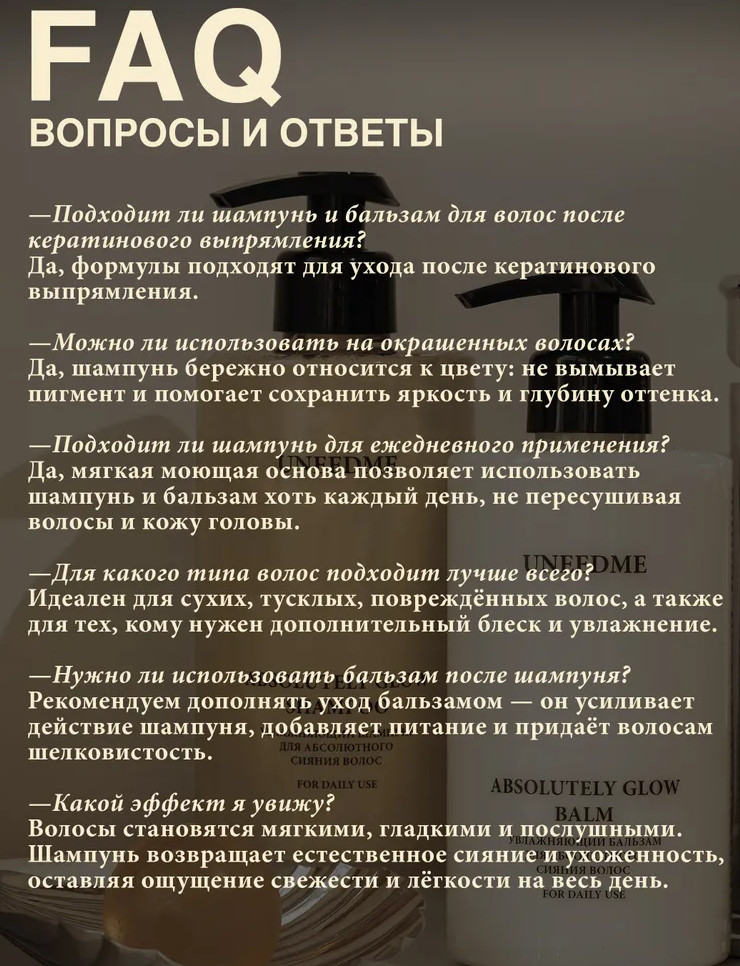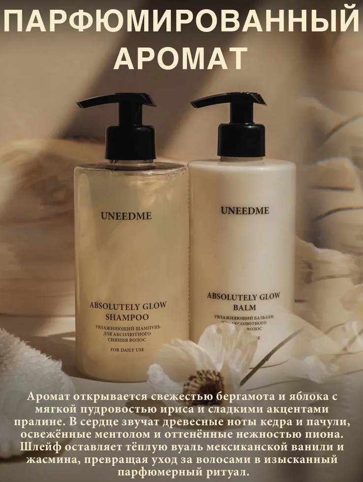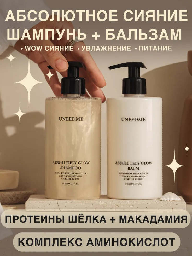 Шампунь: Aqua/Water, Sodium Coco-Sulfate, Sodium Cocoamphoacetate, Cocamidopropyl Betaine, Disodium Laureth Sulfo-succinate, Polyquaternium-7, Vegetable Glycerin, Cocamide DEA, Hydroxyethylurea (Гидроксиэтил Мочевина), Guar Hydroxypropyltrimonium Chloride, Aloe Barbadensis Leaf Extract (Экстракт Алоэ), Avena Sativa (Oat) Kernel Extract (Экстракт Овса), Betaine (Бетаин), Sodium Hyaluronate (Гиалуроновая кислота), Glycine (Глицин), Arginine (Аргинин), Serine (Серин), Squalane (Оливковый сквалан), Sodium Chloride, Citric Acid, Disodium EDTA, Parfum, Ethylhexylglycerin, Phenoxyethanol, Tin Oxide, (CI 77019, CI 77891 минеральные пигменты натурального происхождения).