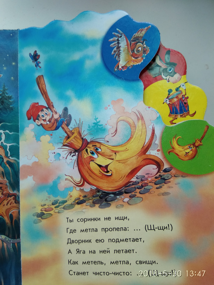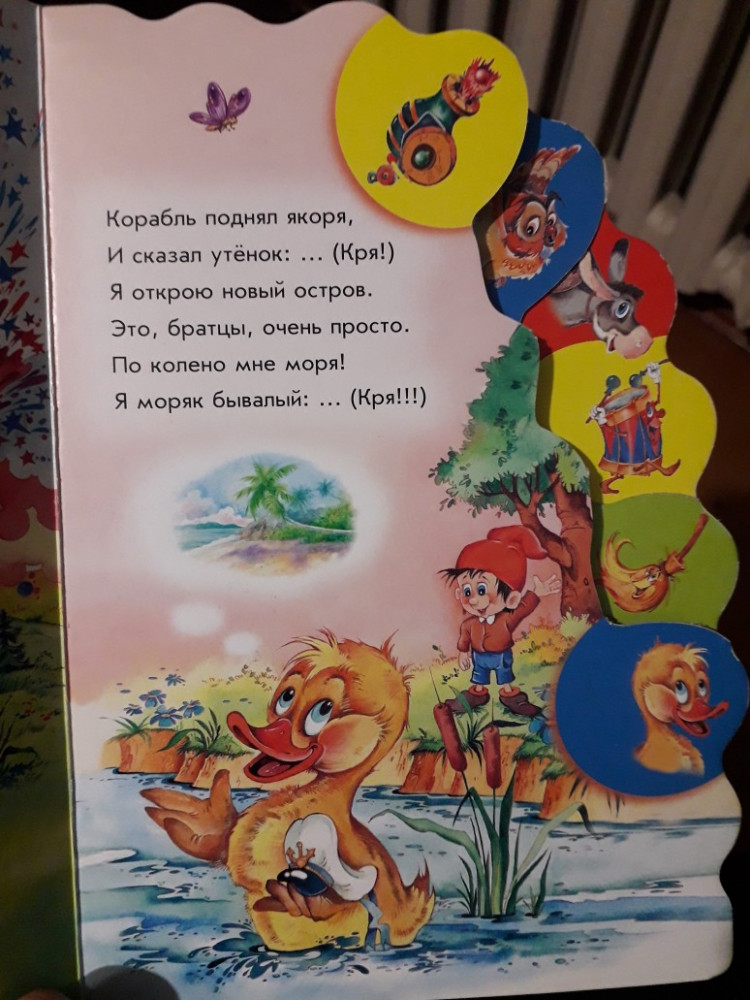 Книга понравилось, ребёнку удобно листать. В книге стихи не только о животных, но и о предметах, таких как башмак, пушка, барабан и метла. К покупке рекомендую для деток ближе к двум годам. Не понравилось то, что верх страниц острый и картон будто потертый (последнее фото). За это и снимаю звезду. Возможно мне просто попался бракованный экземпляр.