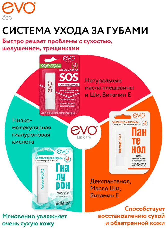 EVO laboratoires Набор гигиенической помады для сухой и обветренной кожи губ