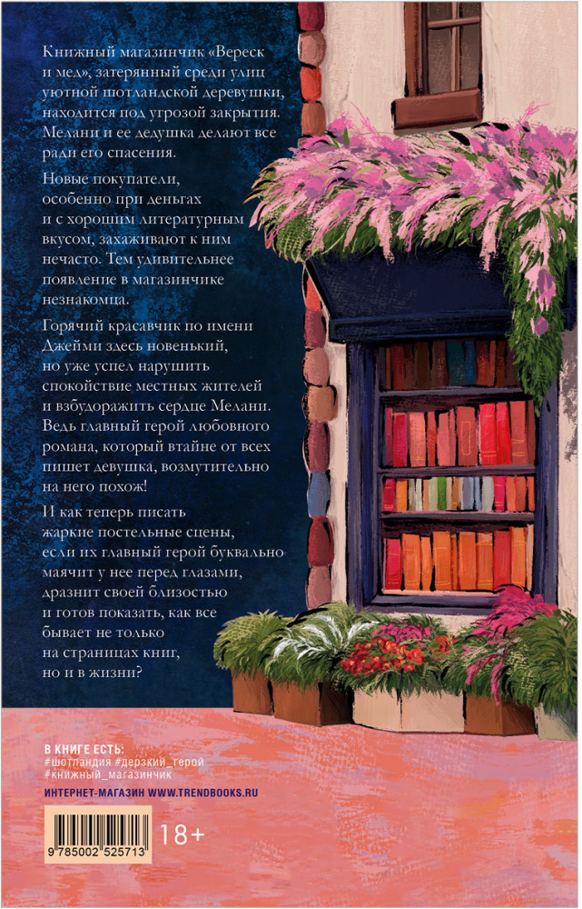 Книжный магазинчик «Вереск и мед», скрытый среди улиц уютной шотландской деревушки, находится под угрозой закрытия. Мелани и ее дедушка делают все ради его спасения. Новые покупатели, особенно при деньгах и с хорошим литературным вкусом, захаживают к ним не часто. Тем удивительнее появление в магазинчике незнакомца. Горячий красавчик по имени Джейми здесь недавно, но уже успел нарушить спокойствие местных жителей и взбудоражить сердце Мелани. Ведь главный герой любовного романа, который втайне от всех пишет девушка, возмутительно на него похож! И как теперь писать жаркие постельные сцены, если их главный герой буквально маячит у нее перед глазами, дразнит своей близостью и готов показать, как все бывает не только на страницах книг, но и в жизни?