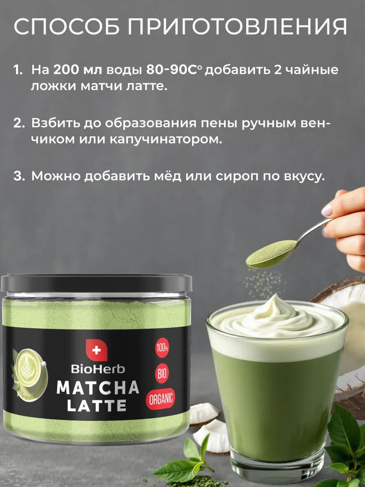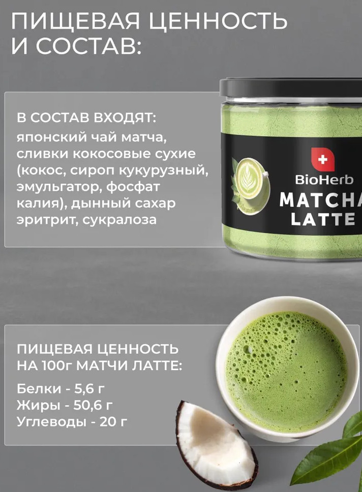 Чай от BioHerb подойдет тем, кто следит за фигурой и хочет похудеть и поддерживать форму без лишних усилий. Он также понравится любителям японской кухни, которые смогут насладиться настоящим японским вкусом матча прямо у себя дома. Диетический чай — это отличная альтернатива вредным сладостям, которые полны сахара, для тех, кто ищет полезные сладости. Кроме того, чай для похудения — это оригинальный и полезный подарок для ваших близких. Не упустите возможность попробовать этот удивительный напиток! Закажите Матча Латте BioHerb с кокосовыми сливками прямо сейчас и наслаждайтесь его вкусом и пользой!