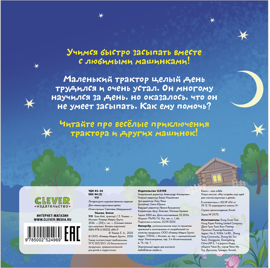 Сонные сказки про машинки. Книжки-картонки. Баю-бай, трактор!-25% +32