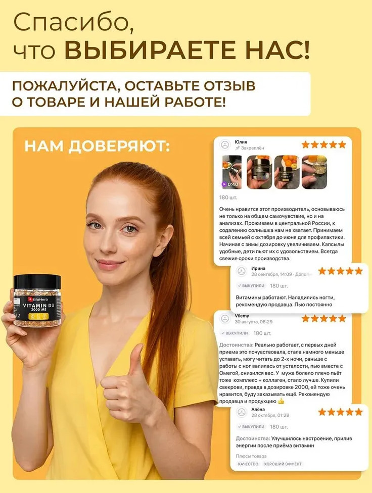 💳 Оплатить за товар можно при получении 🇰🇿 Есть бесплатная доставка по Казахстану от 1 дня 🎁 Копите бонусы с каждой покупки Хотите подарить своему организму здоровье и энергию? Тогда Витамин D3 от BioHerb в капсулах — идеальный выбор для вас! Витамин Д3 2000UI (холекальциферол) в капсулах по 150 мг от BioHerb — натуральная добавка, произведенная в соответствии с мировыми стандартами ISO и HACCP. |