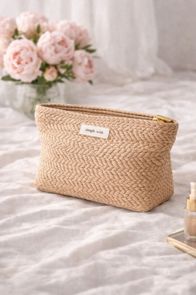 Стильная плетёная косметичка — удобный аксессуар для хранения косметики, мелочей и аксессуаров. Выполнена из плотного текстильного материала с декоративным плетением, хорошо держит форму. Компактная, но вместительная — легко помещается в сумку или рюкзак. Надёжная молния обеспечивает безопасное хранение вещей. Подходит для повседневного использования, поездок, путешествий.